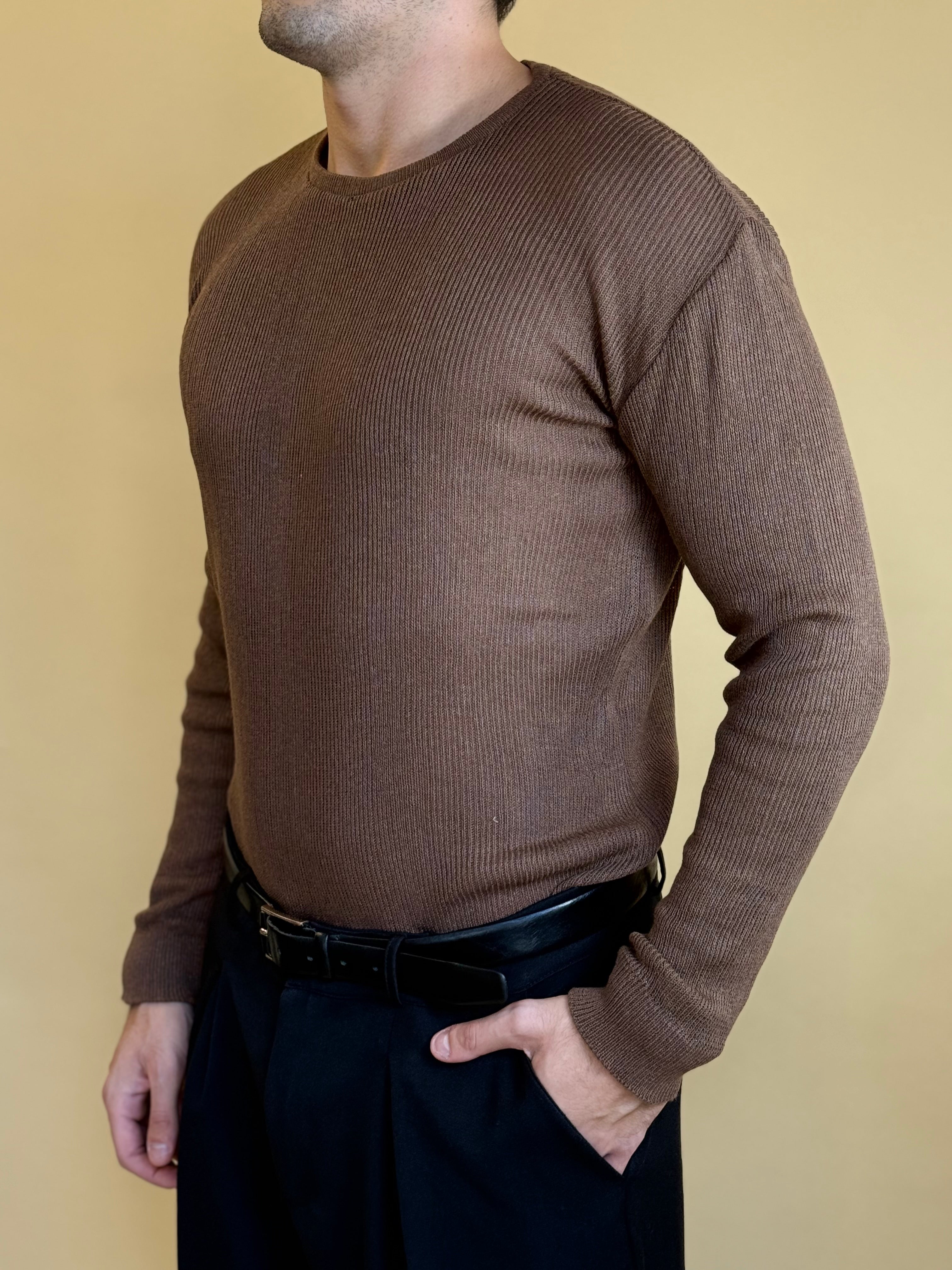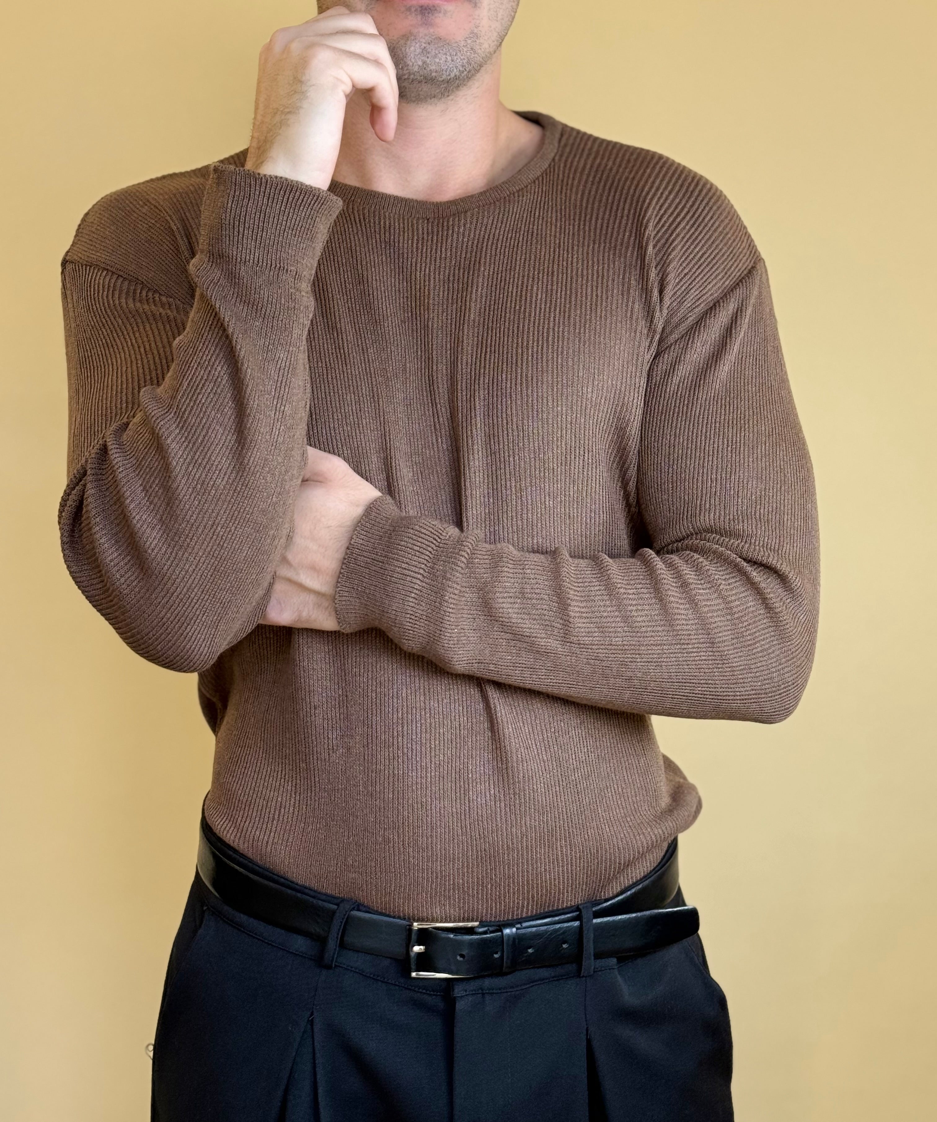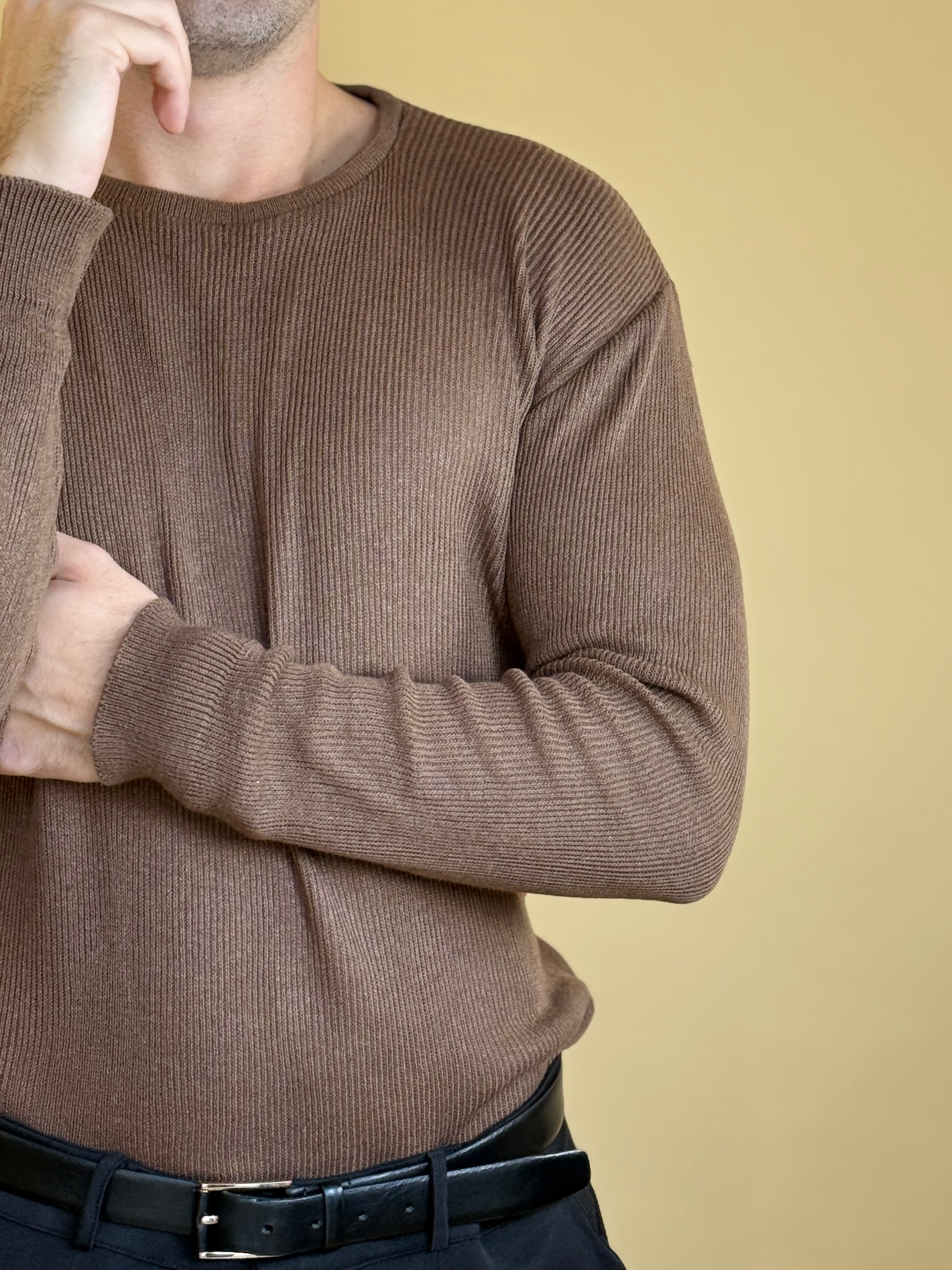 "Maglia 100% merino: calda ma leggera, zero prurito. Perfetta sotto il blazer."