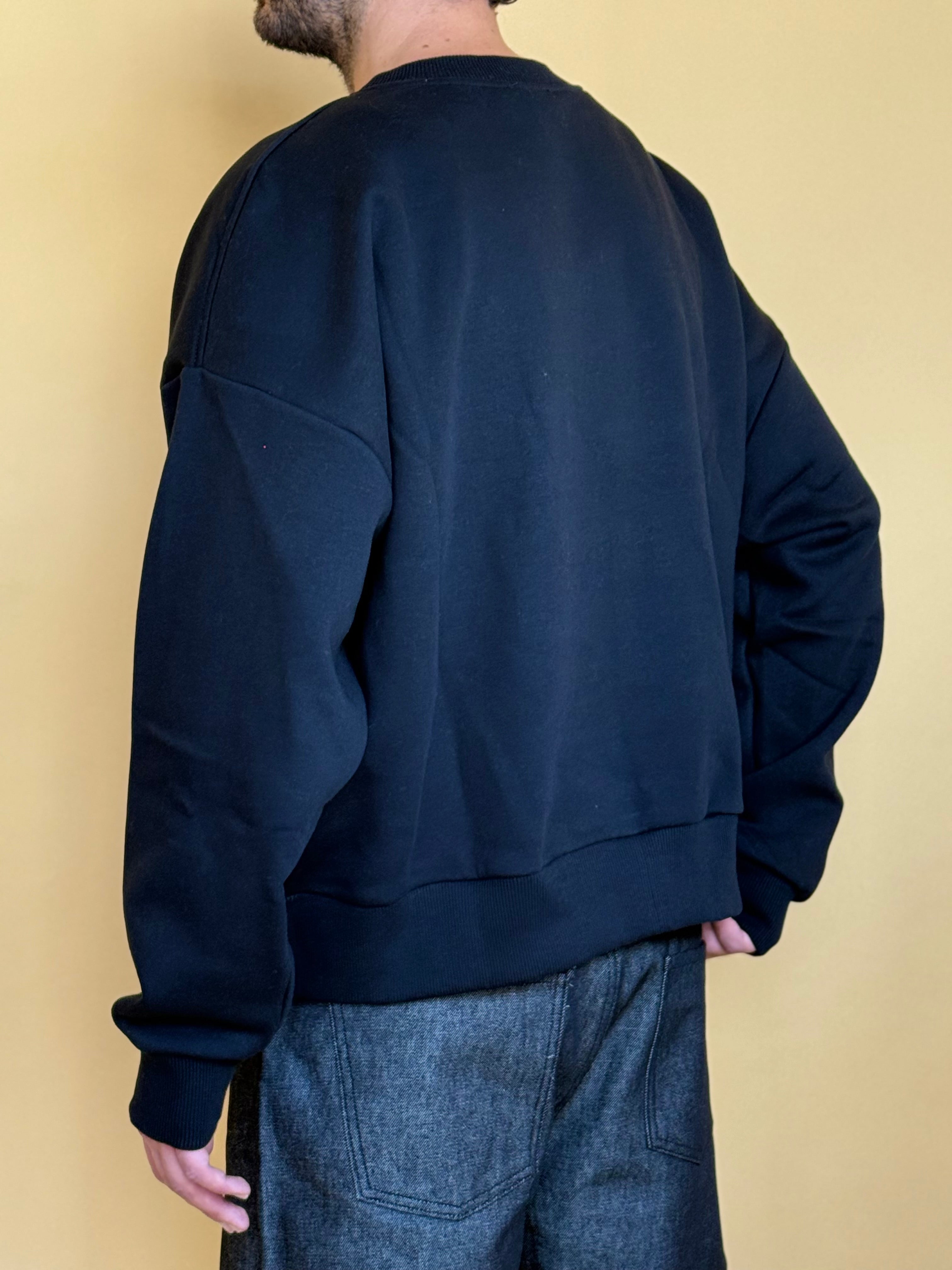 • Felpa girocollo dalla vestibilità crop ed oversize. Si presenta felpata internamente con balza, polsini e collo in costina. E' disponibile in 2 varianti colore.