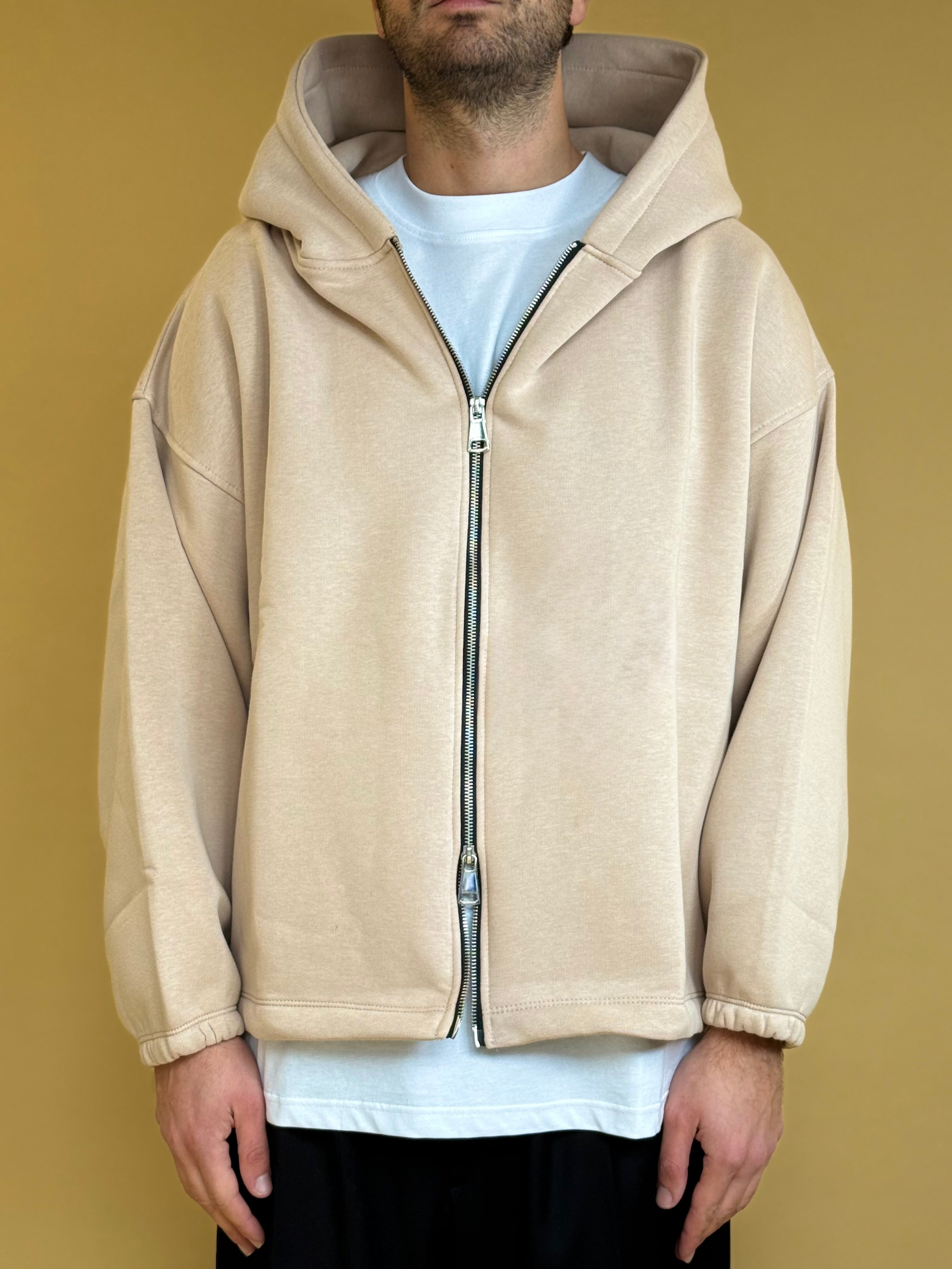 "Felpa full-zip: cotone spazzolato interno e zip scorrevole. Veste pulita, ottima per layering."