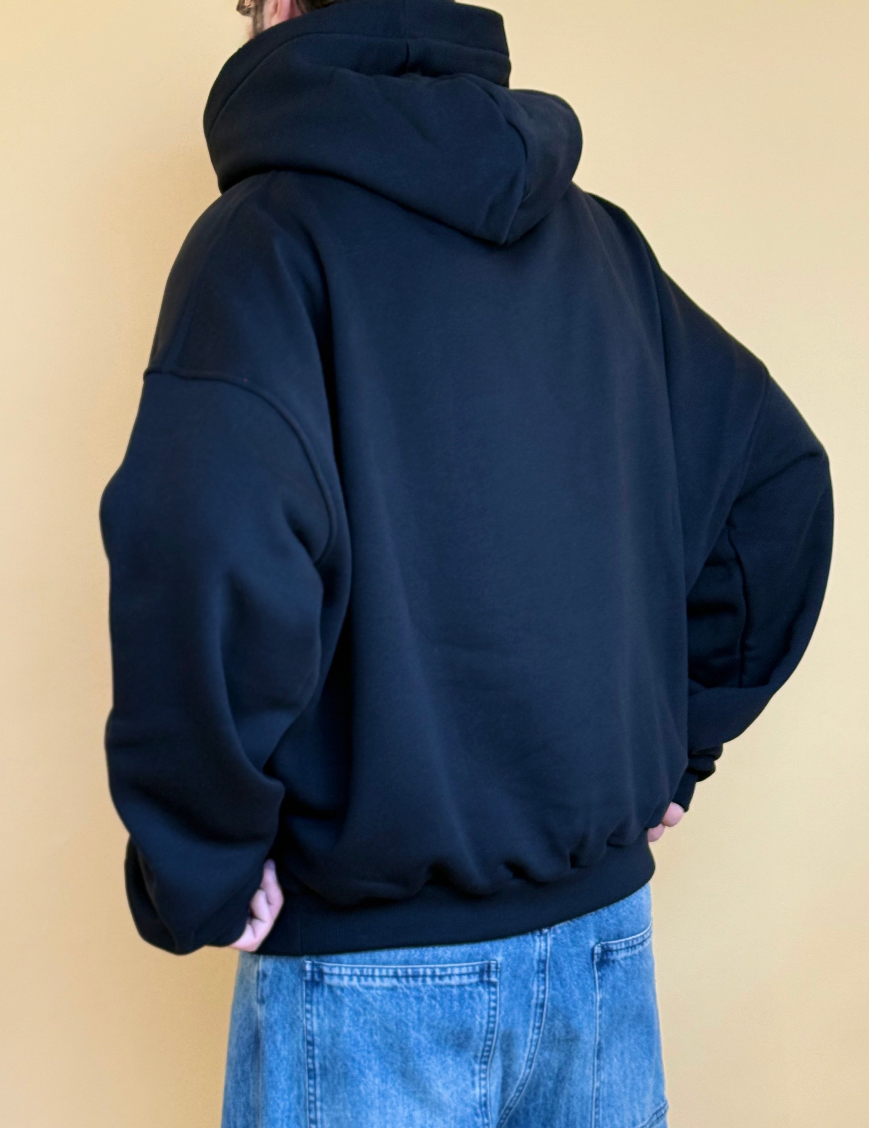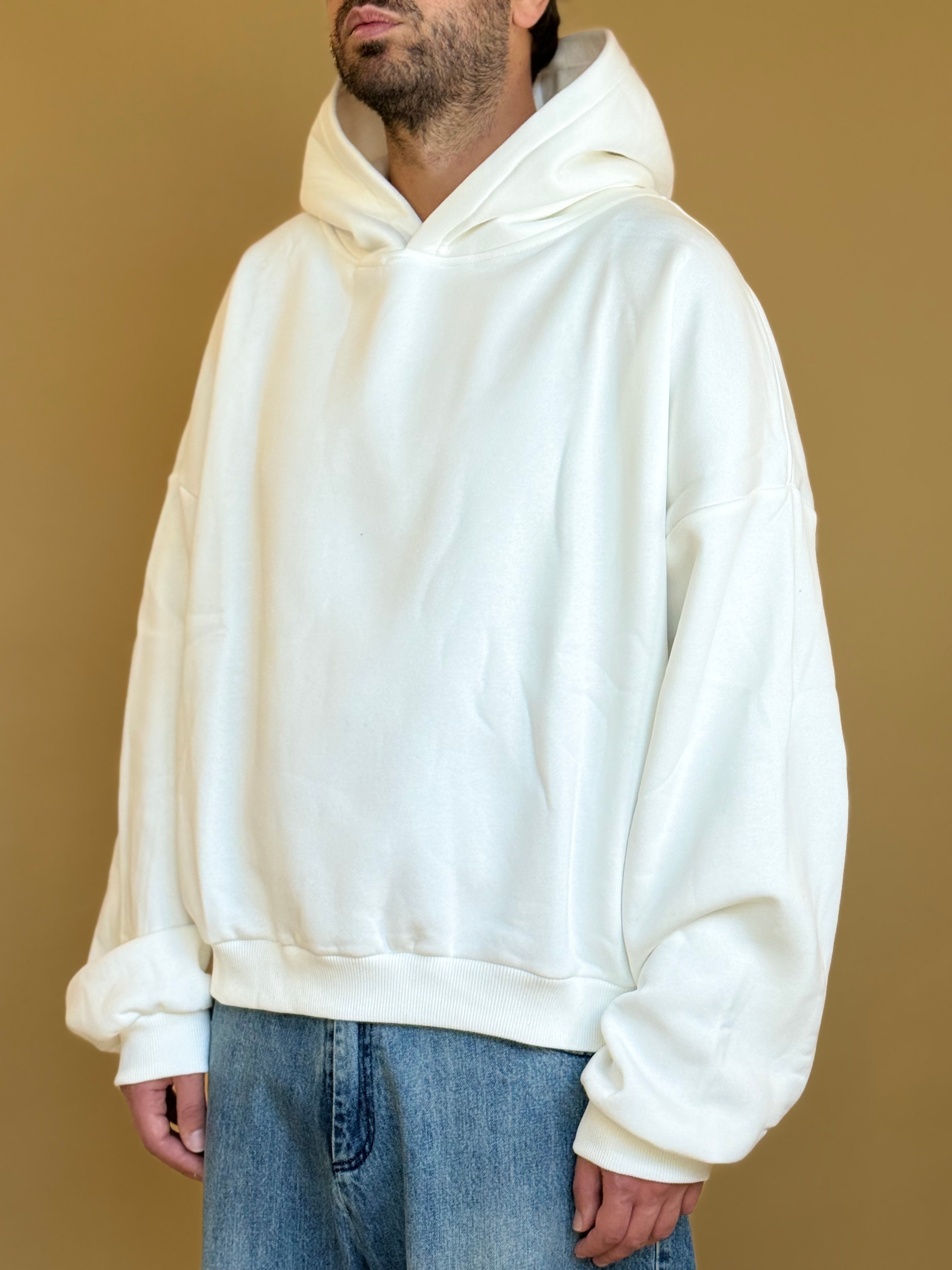 Felpa con cappuccio dalla vestibilità crop ed oversize. Si presenta felpata internamente con balza e polsini in costina. E' disponibile in 2 varianti colore.