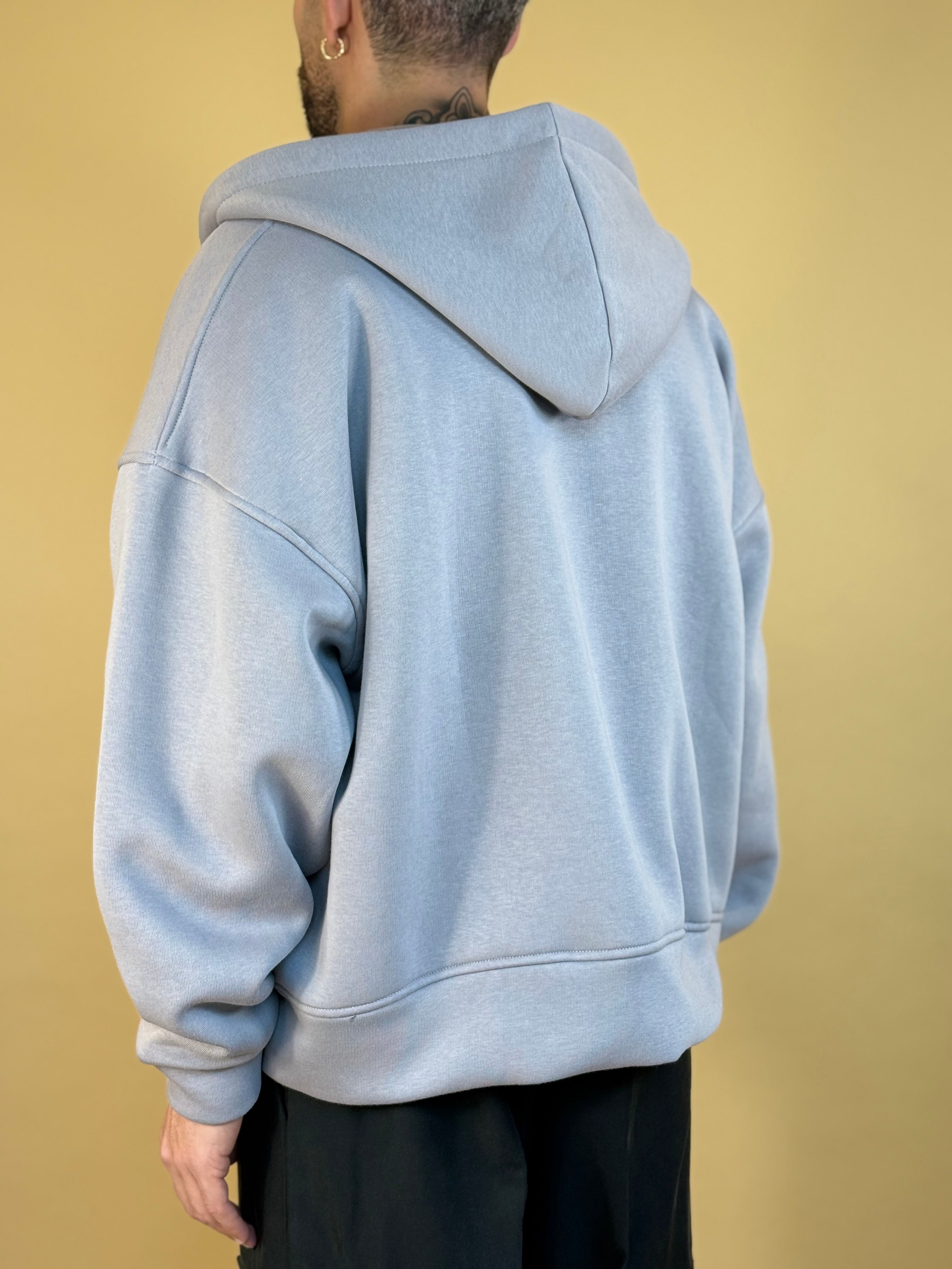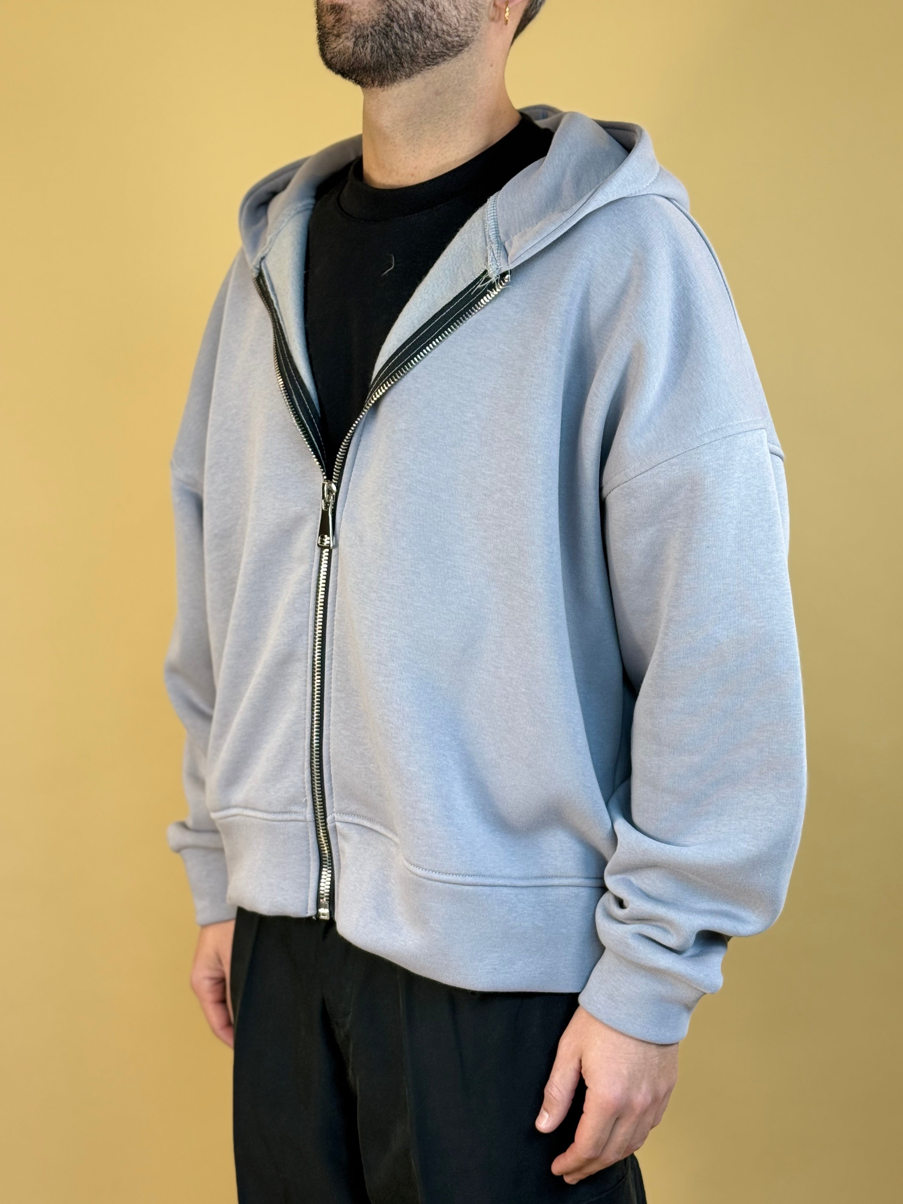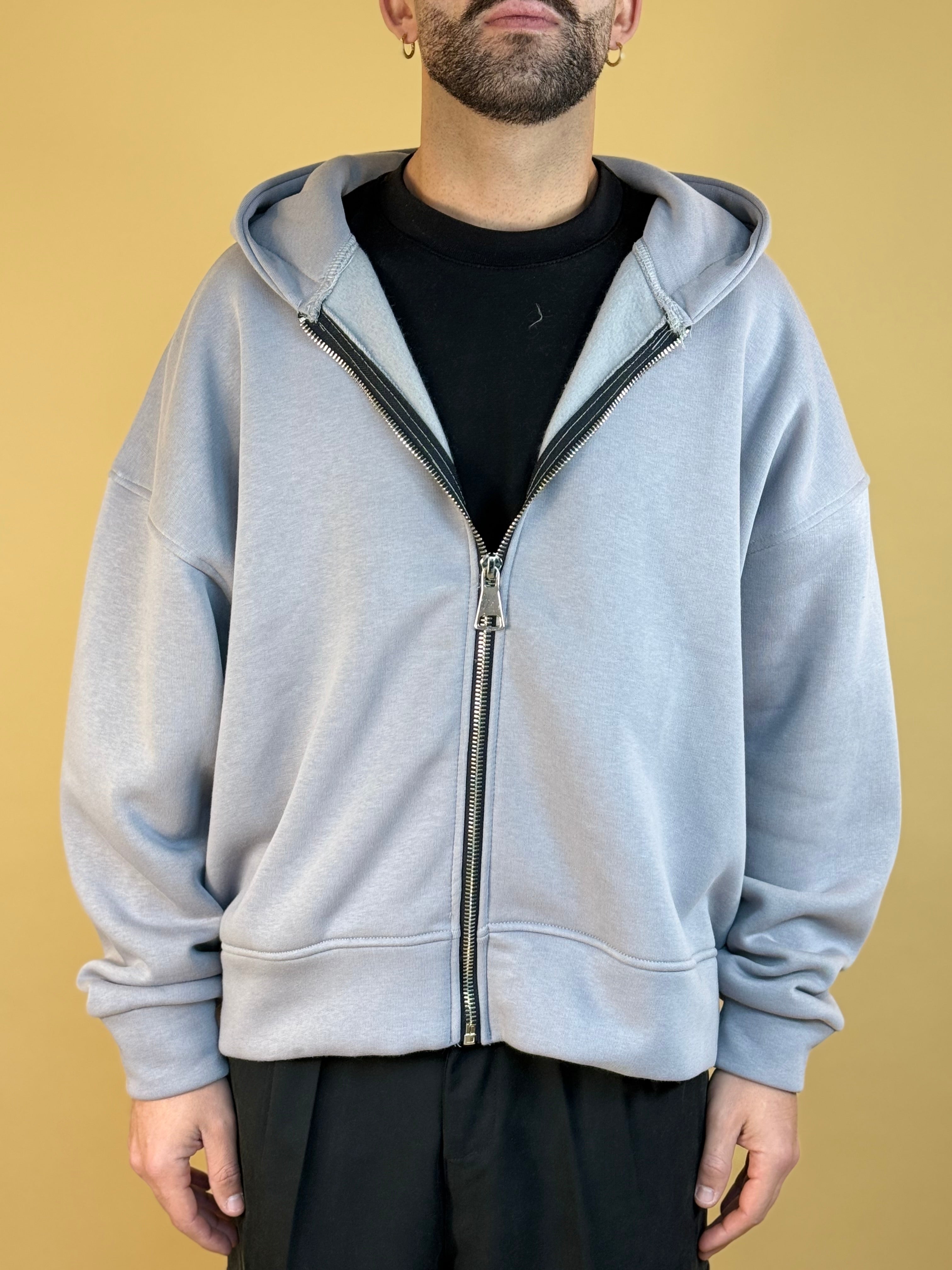 "Felpa full-zip: cotone spazzolato interno e zip scorrevole. Veste pulita, ottima per layering."