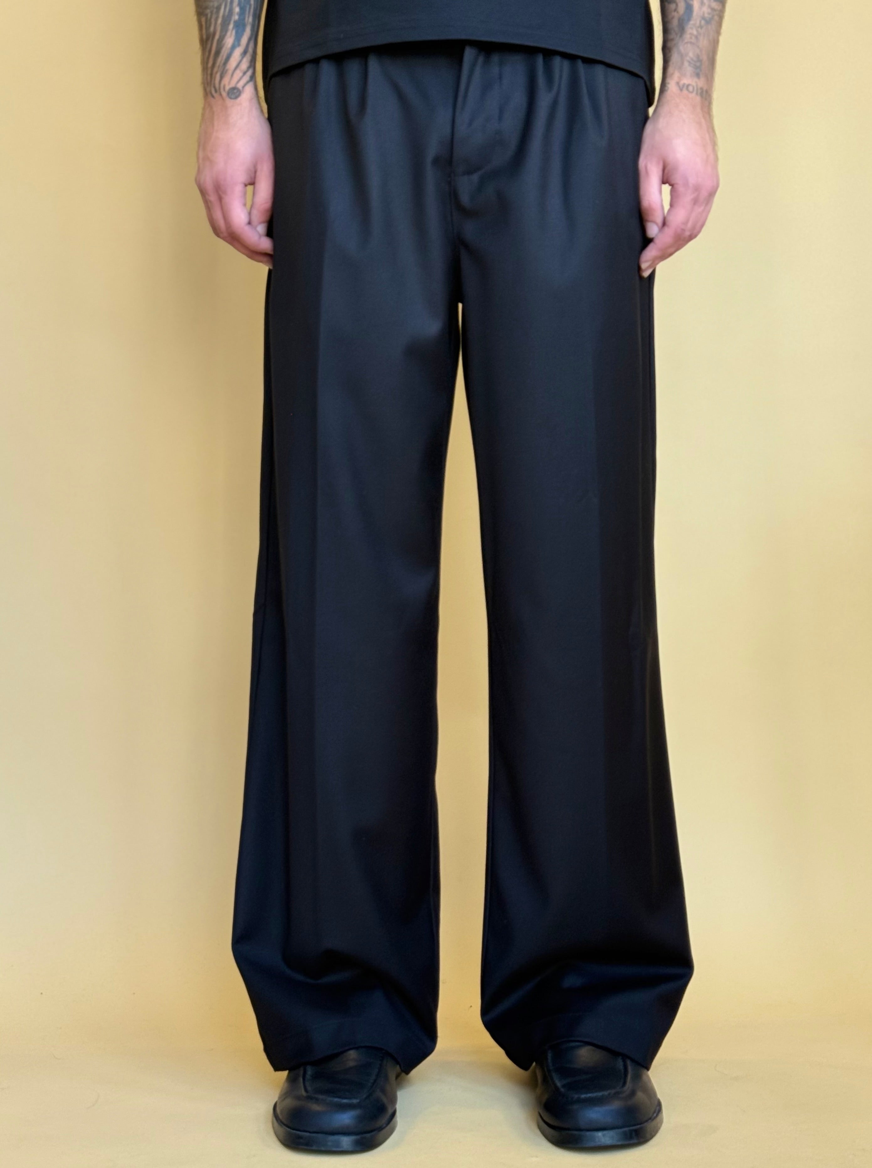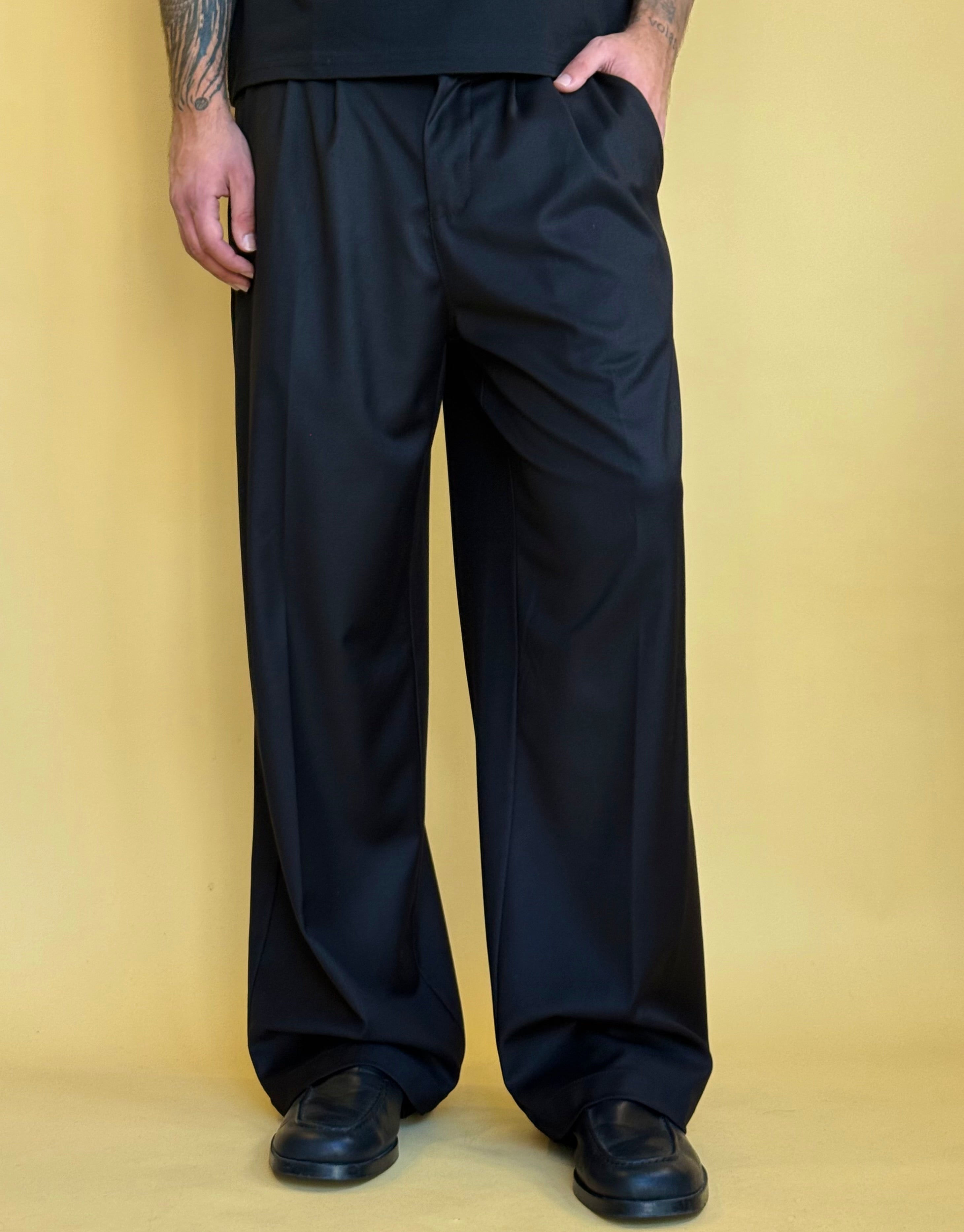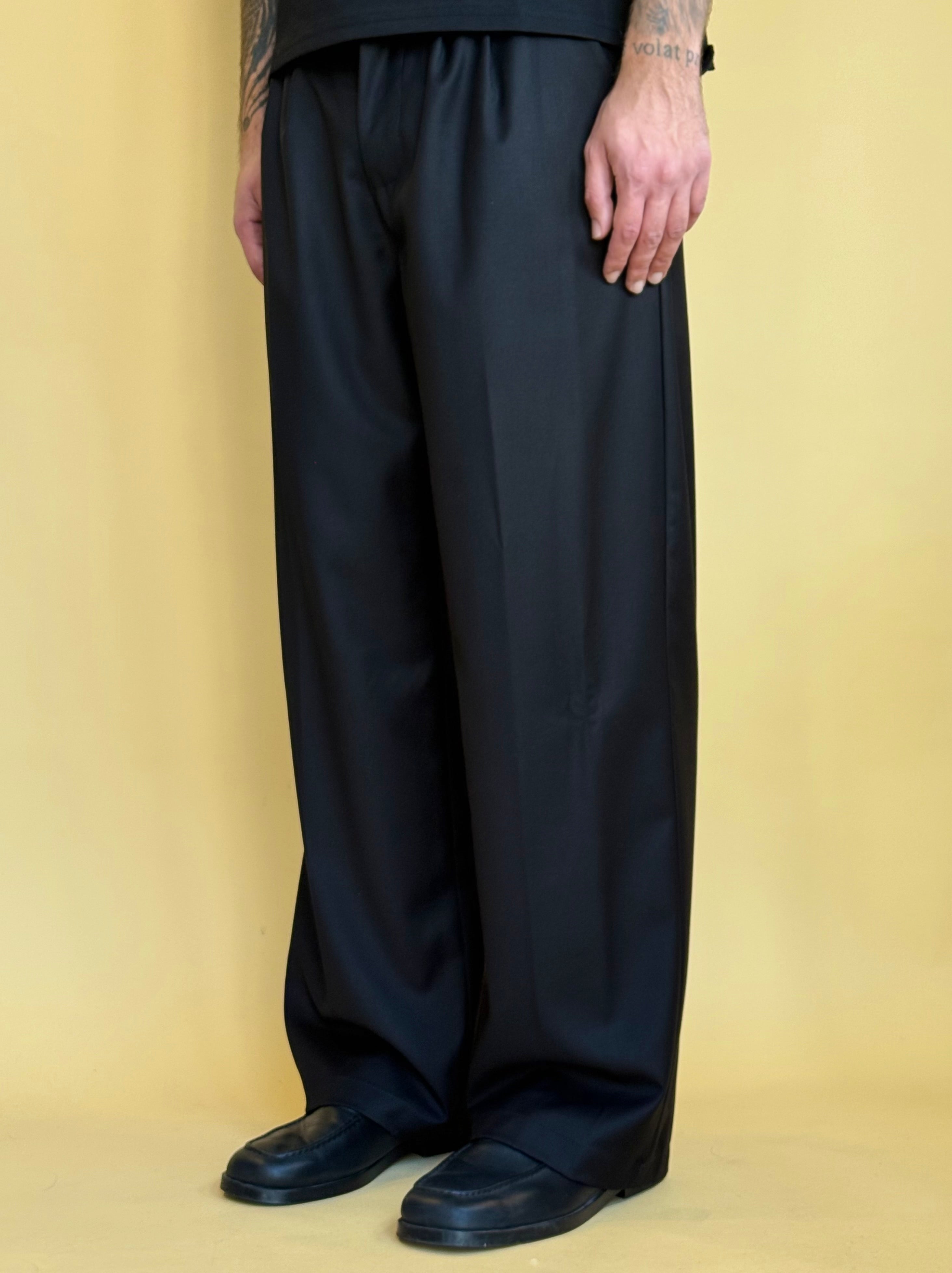 Pantalone dalla vestibilità ampia e dalle linee impeccabili, si contraddistingue per comfort grazie all'elastico retro ed eleganza data dalla qualità del tessuto. E' disponibile in 3 varianti di colore.