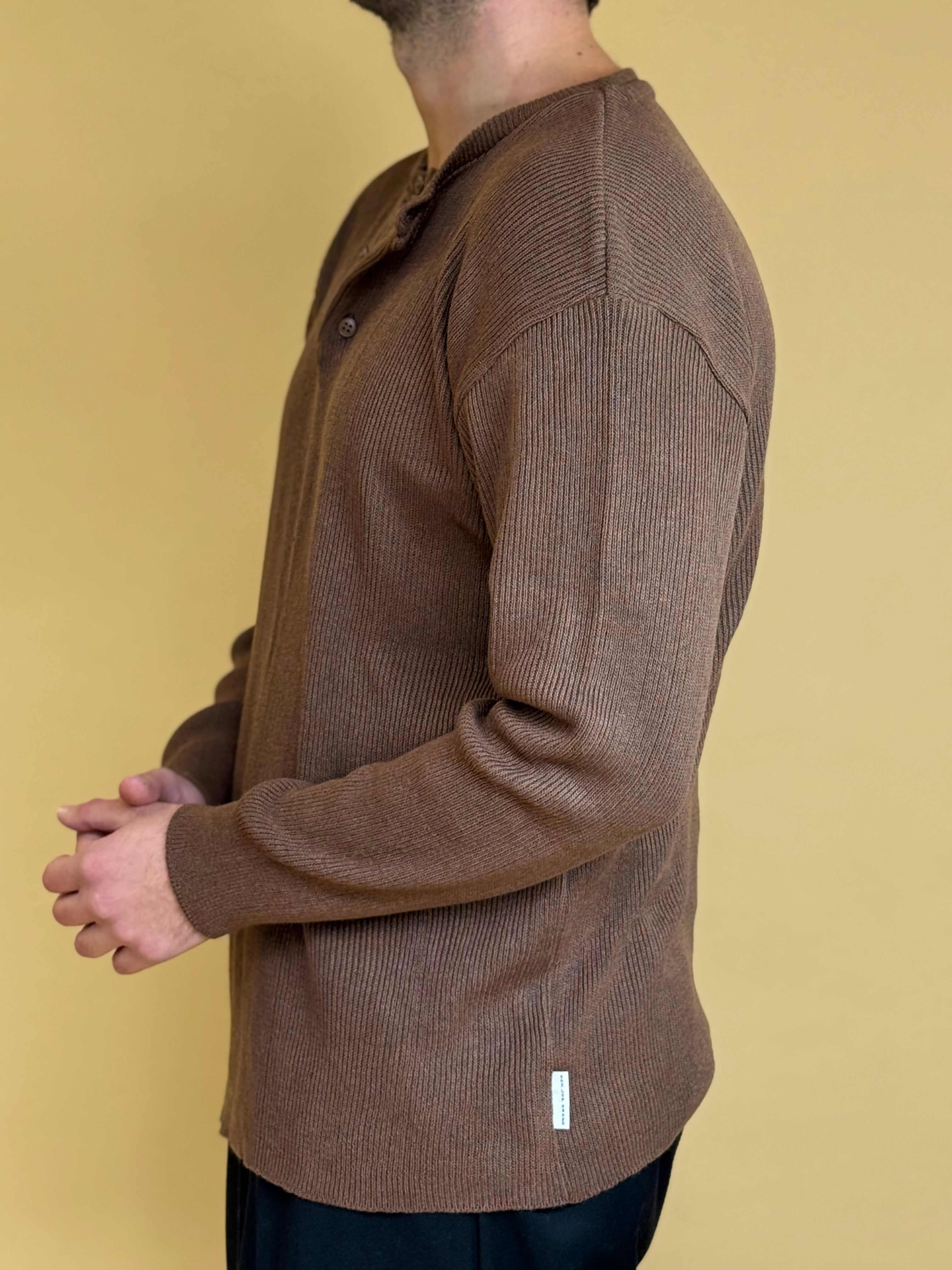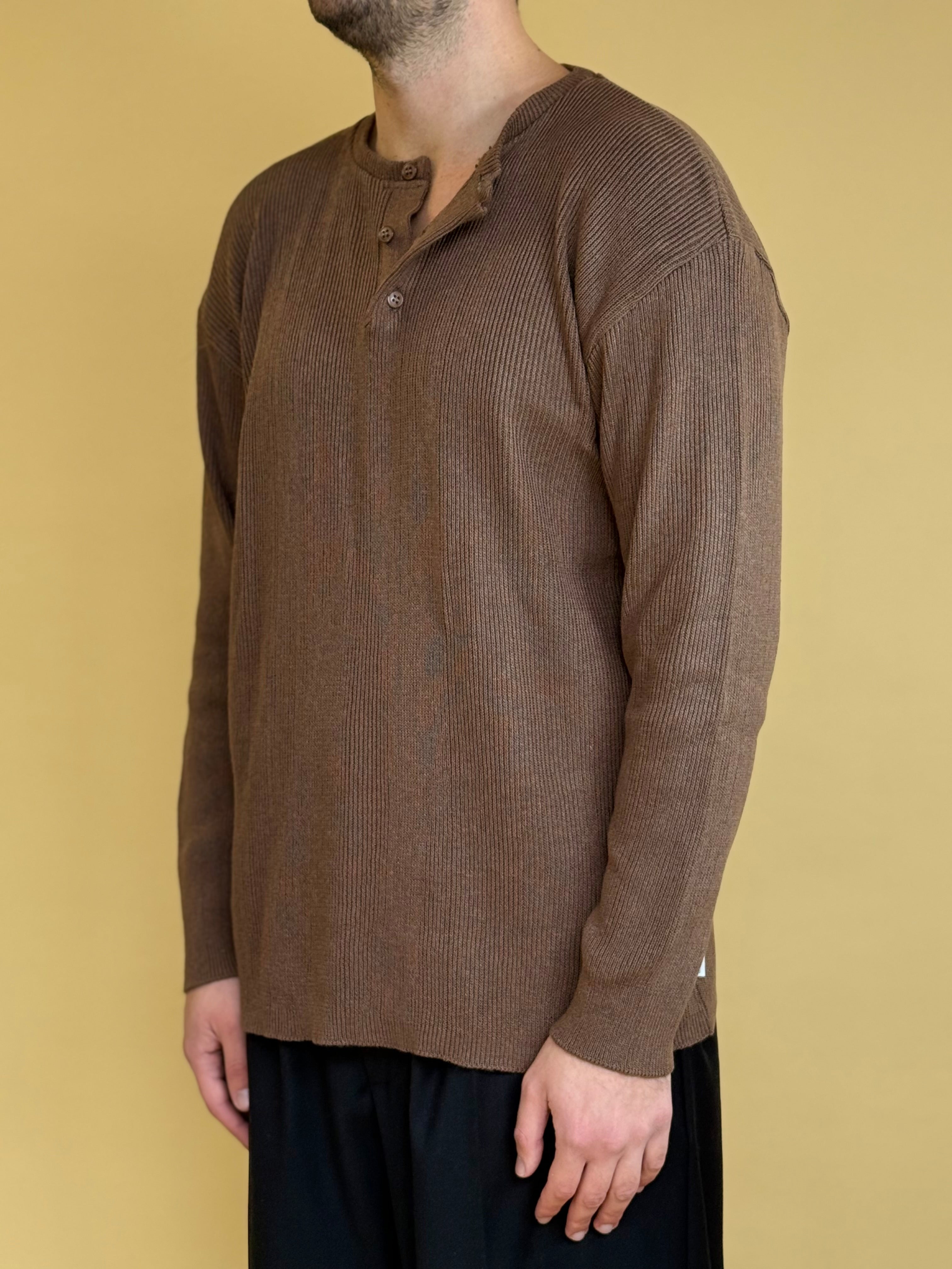 T-shirt manica lunga in costina modello serafino dalla vestibilità regolare con chiusura a 3 bottoni. Articolo di punta delle nostre collezioni.