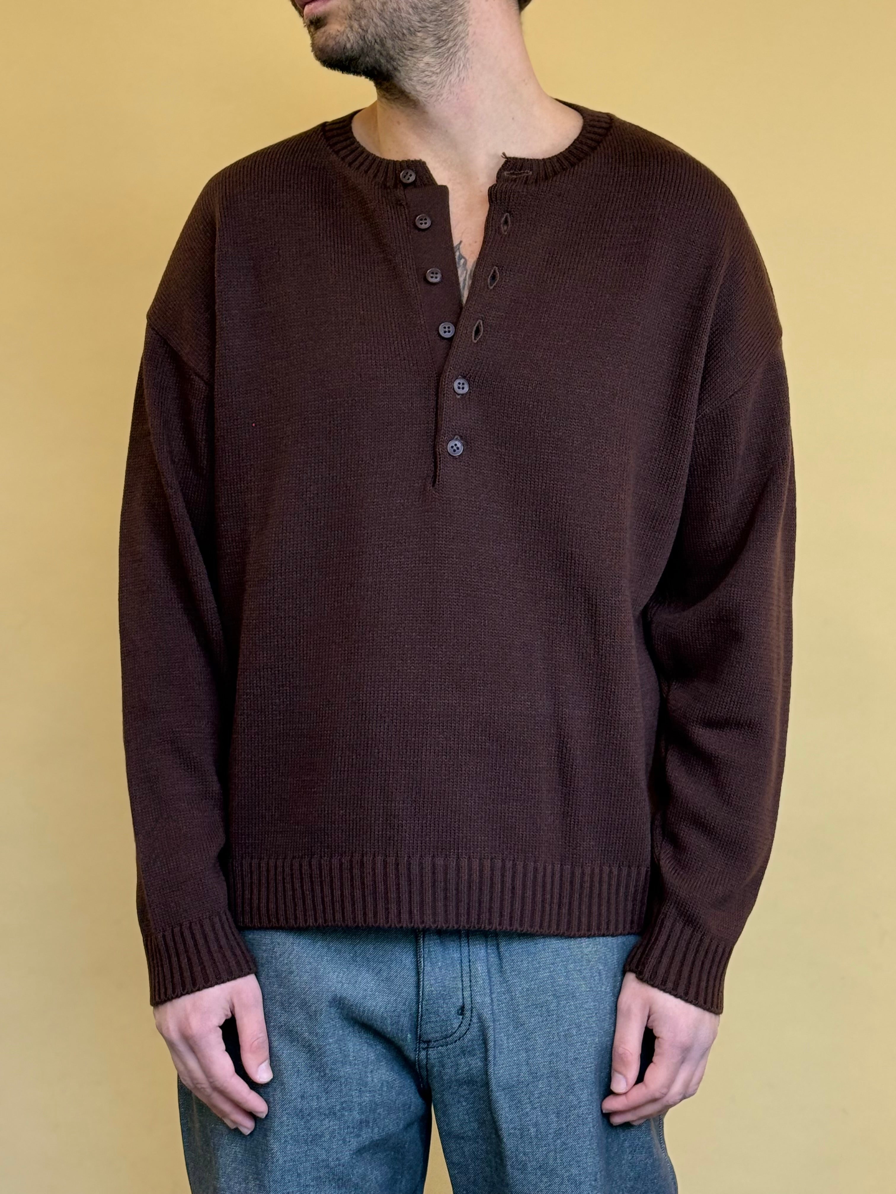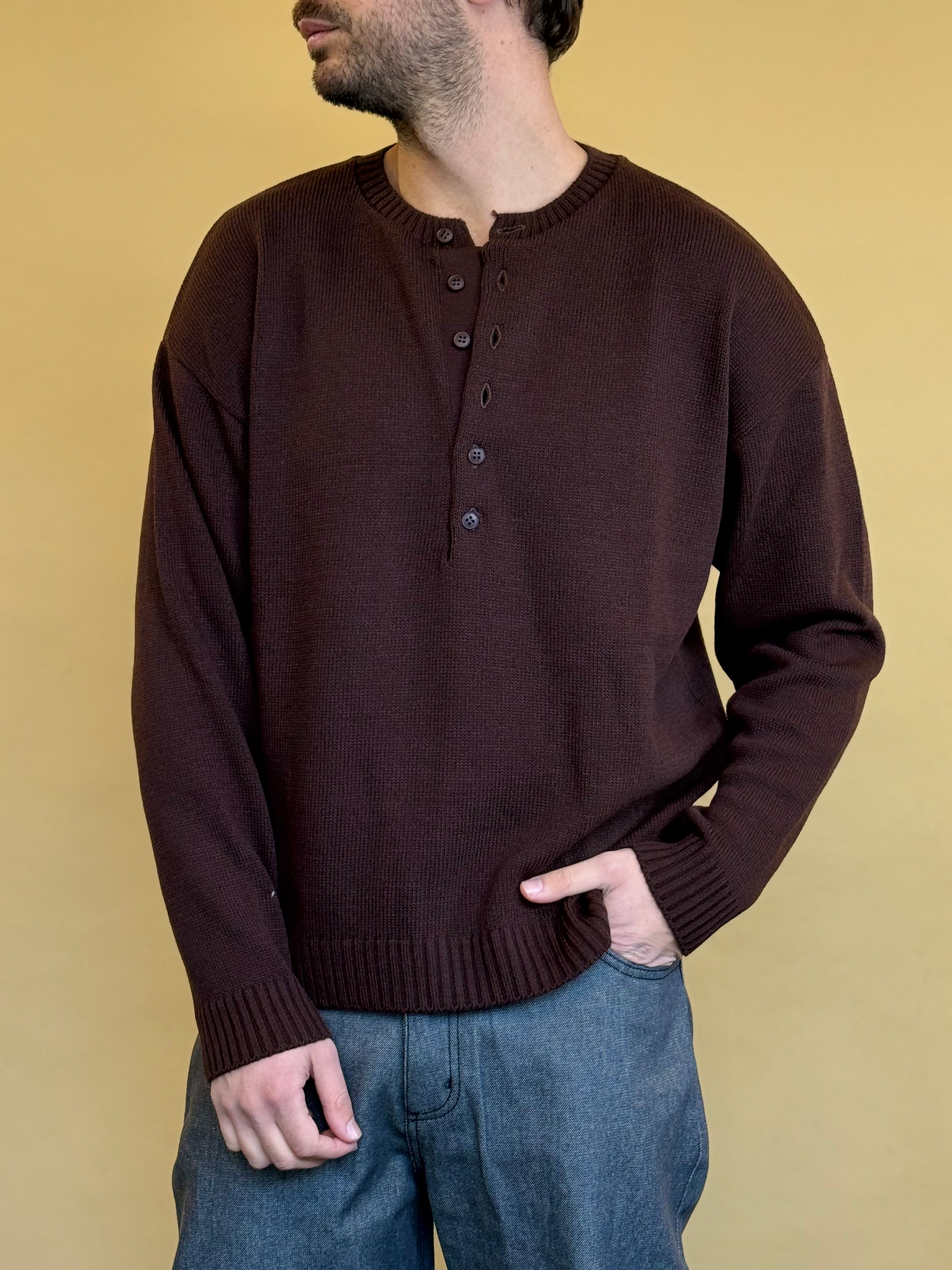 • Maglione modello serafino in misto lana dalla vestibilità comoda con chiusura 6 bottoni ed estremità definite in costina.