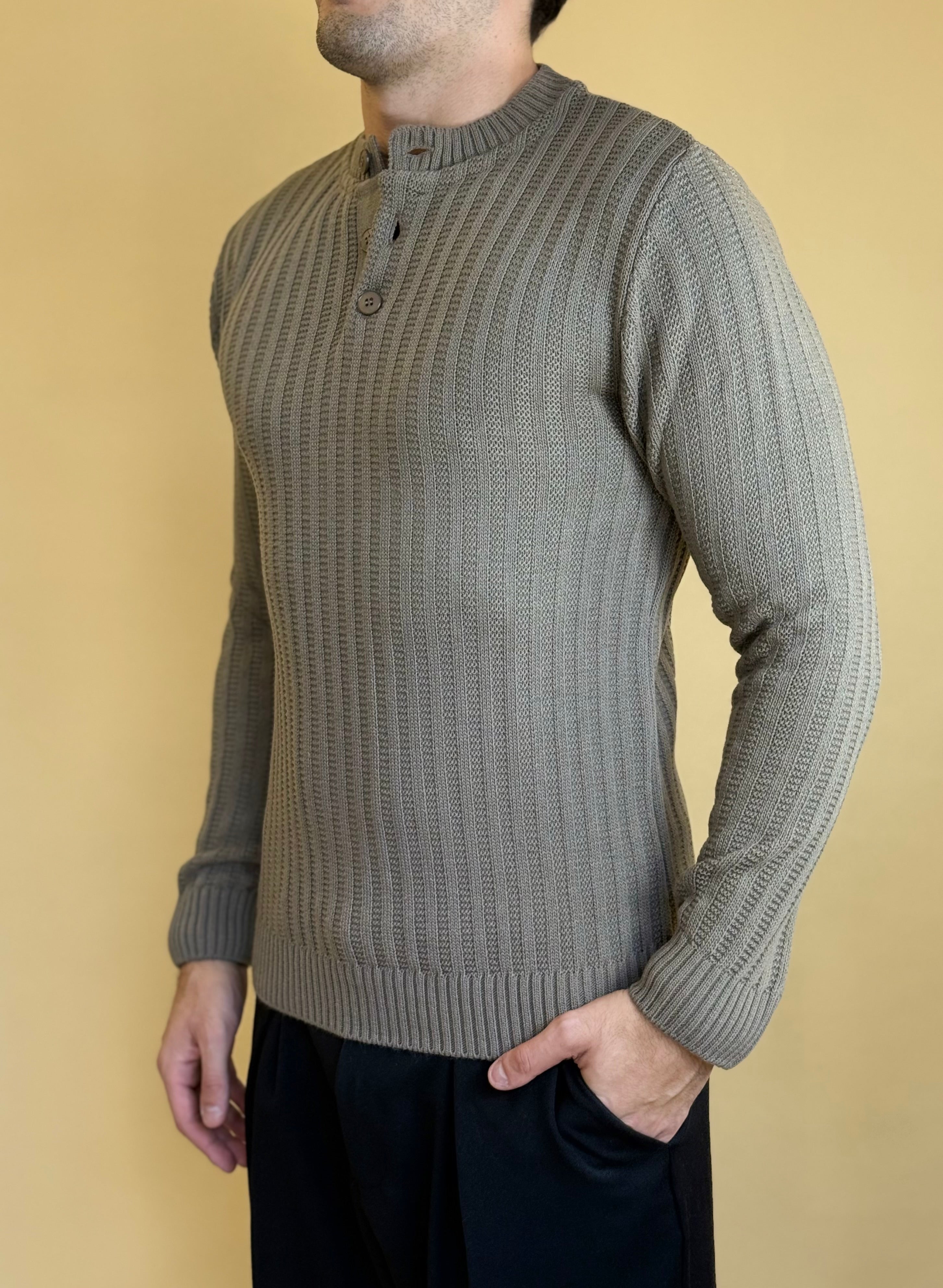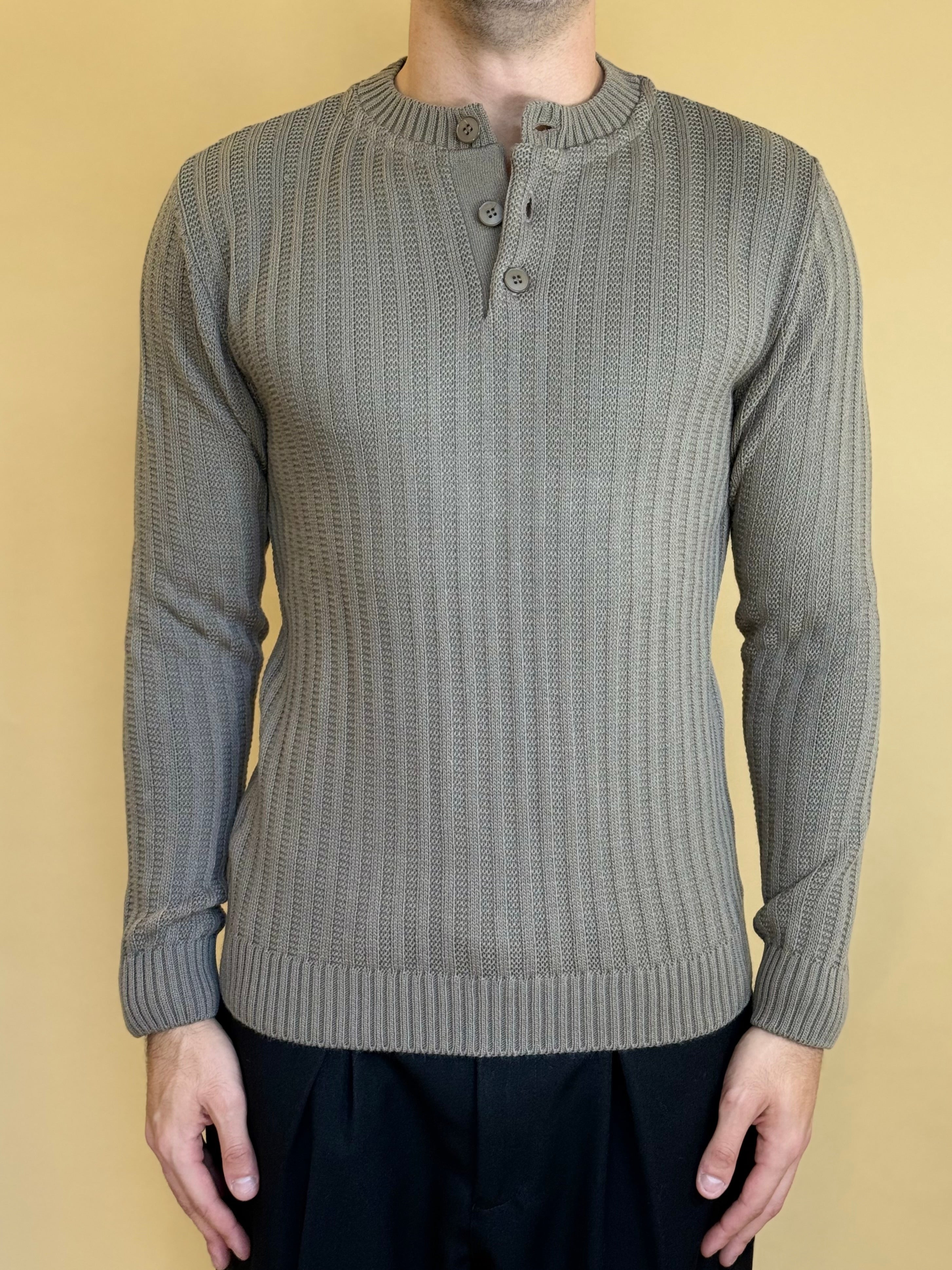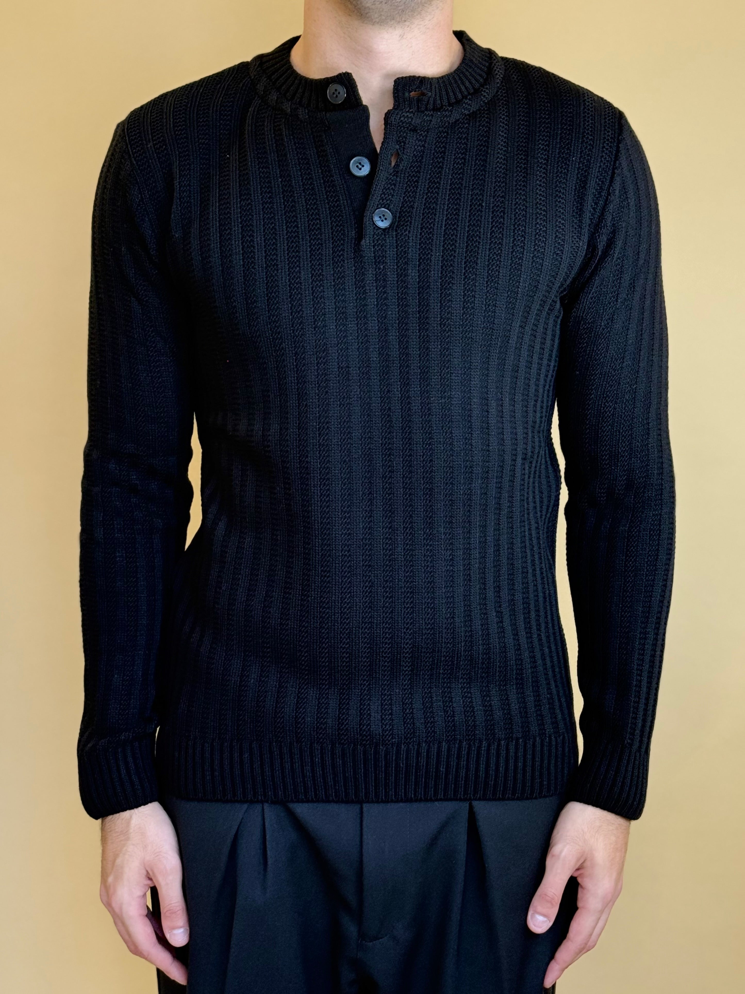Maglione modello serafino in misto lana dalla vestibilità regolare. Presenta una tramatura a costa larga con estremità definite in costina e bottoni a tono. Super versatile , è ideale per completare i tuoi look giornalieri o serali.