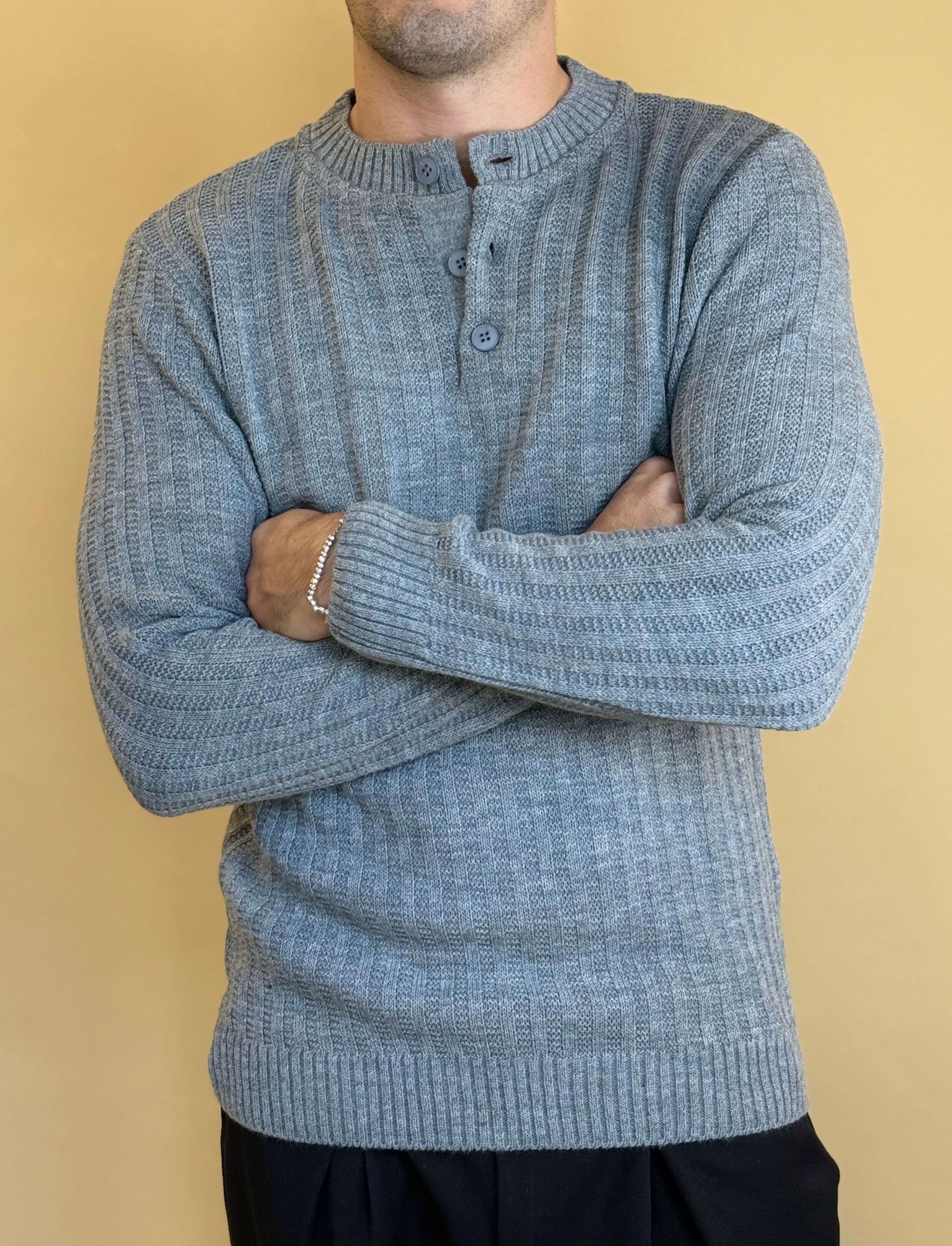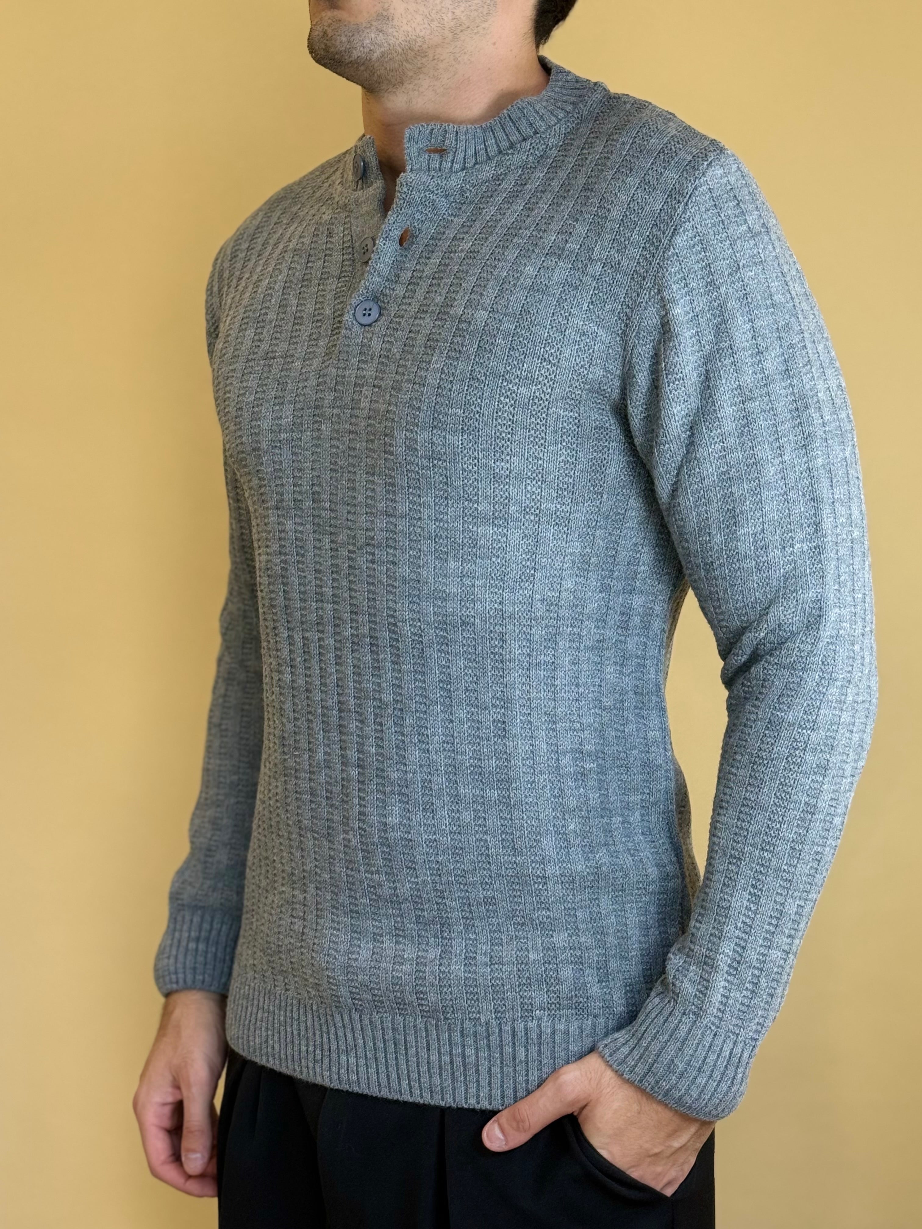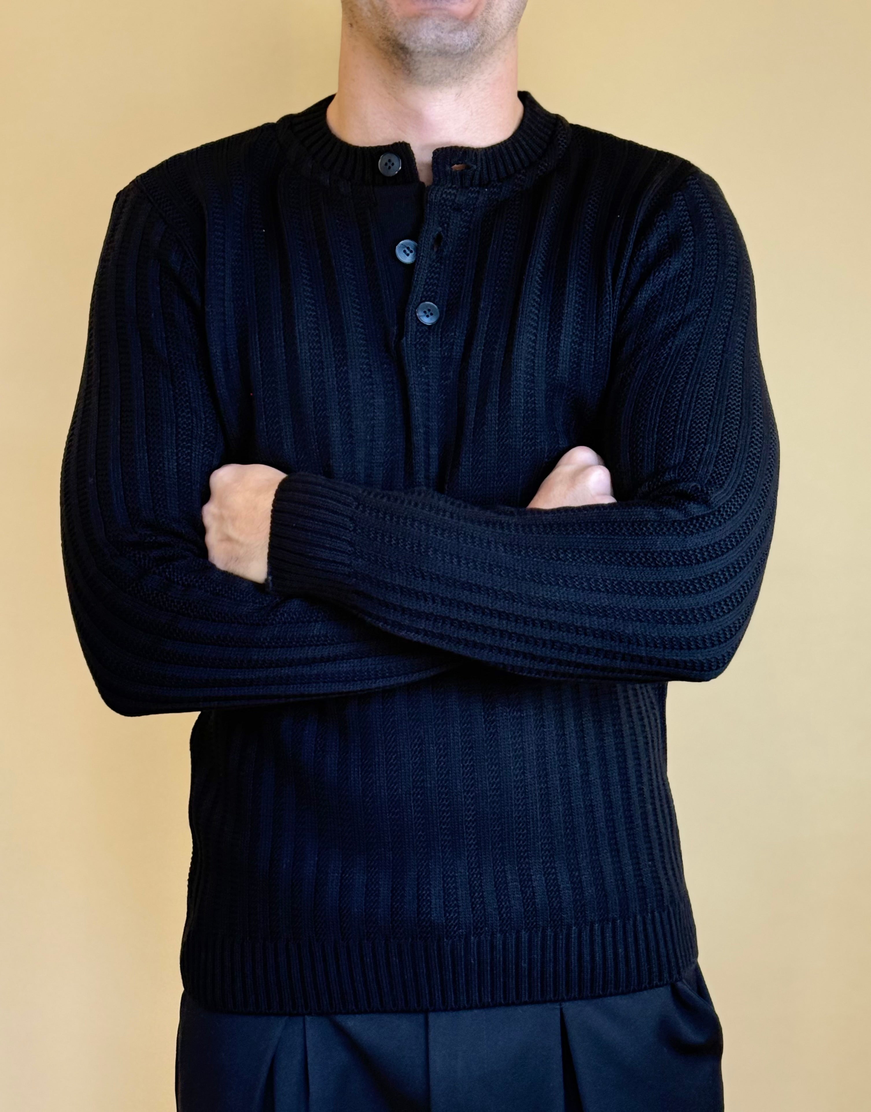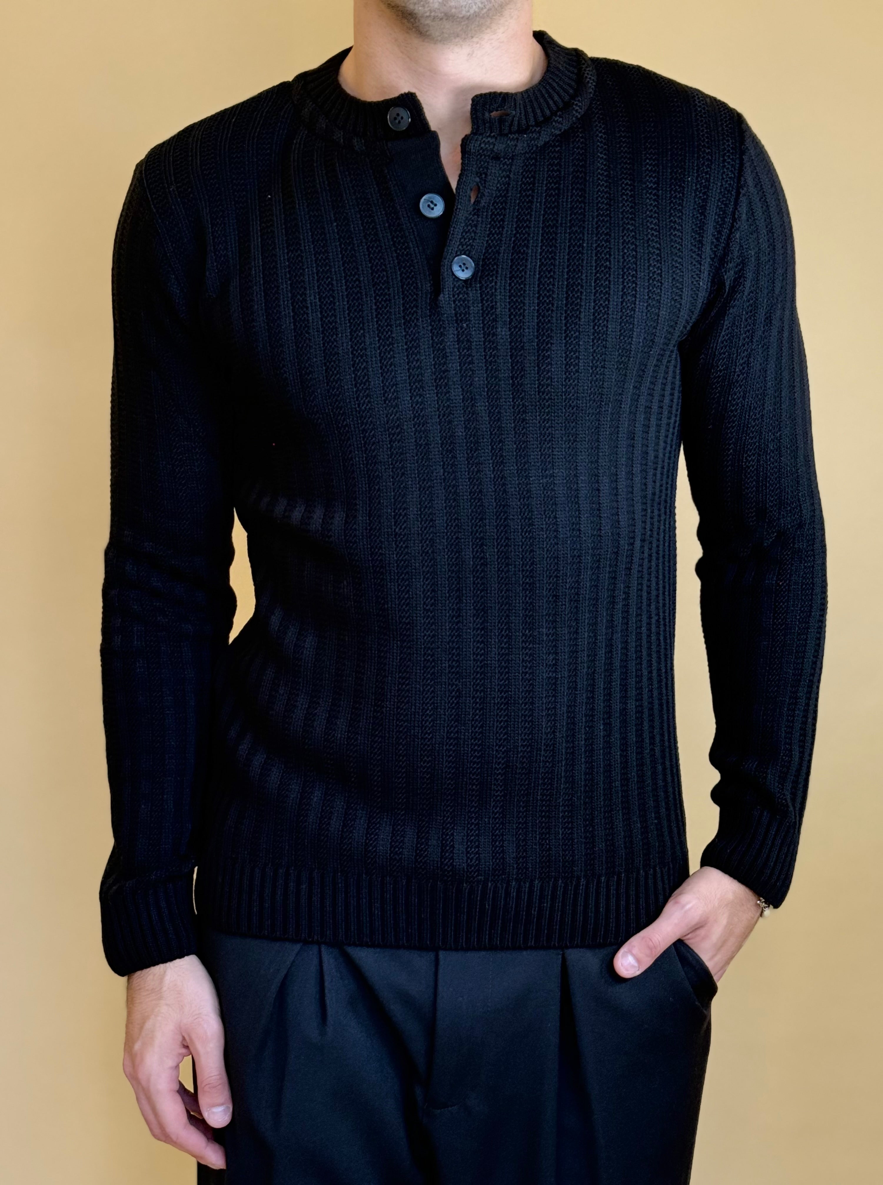 Maglione modello serafino in misto lana dalla vestibilità regolare. Presenta una tramatura a costa larga con estremità definite in costina e bottoni a tono. Super versatile , è ideale per completare i tuoi look giornalieri o serali.