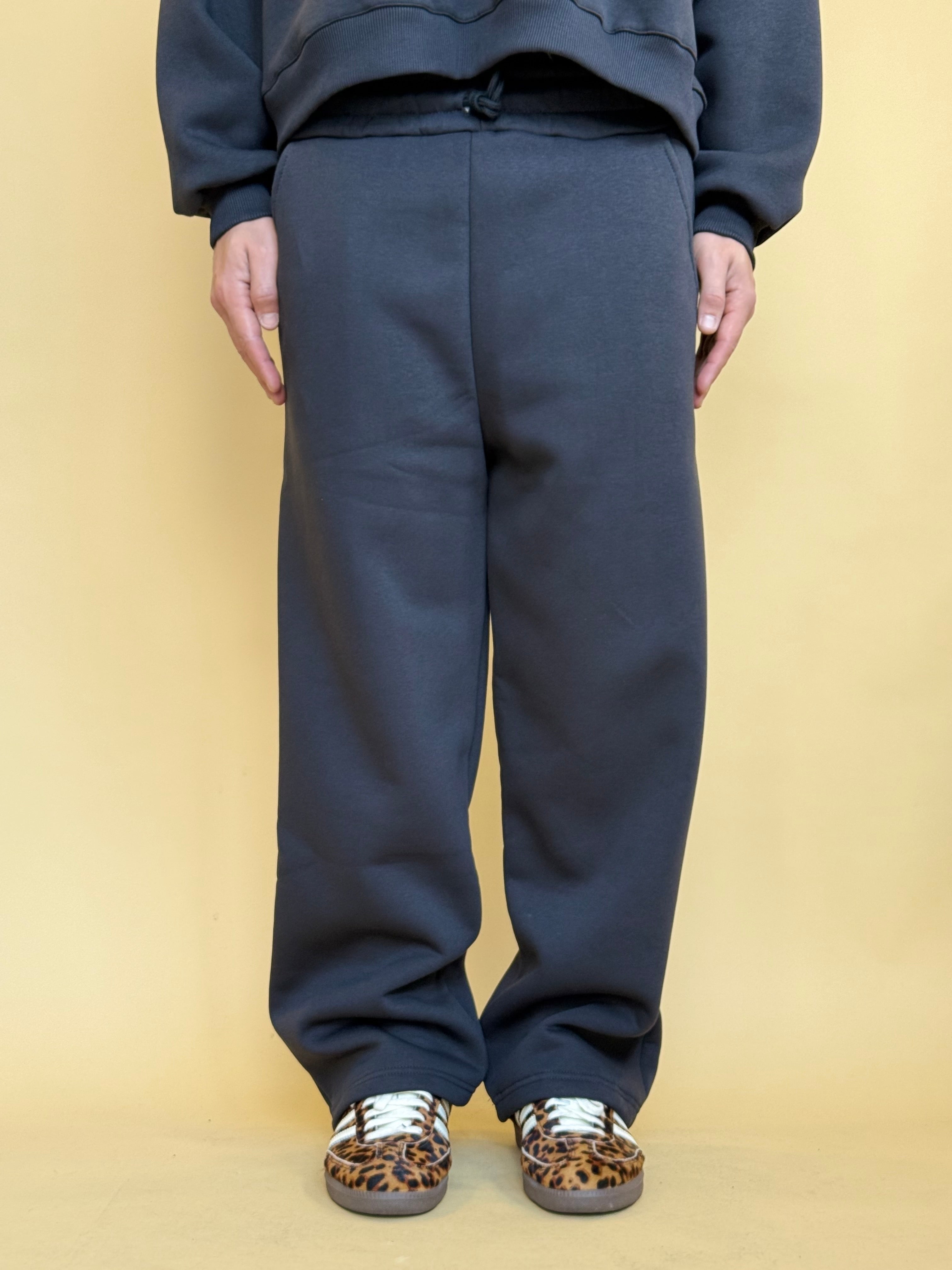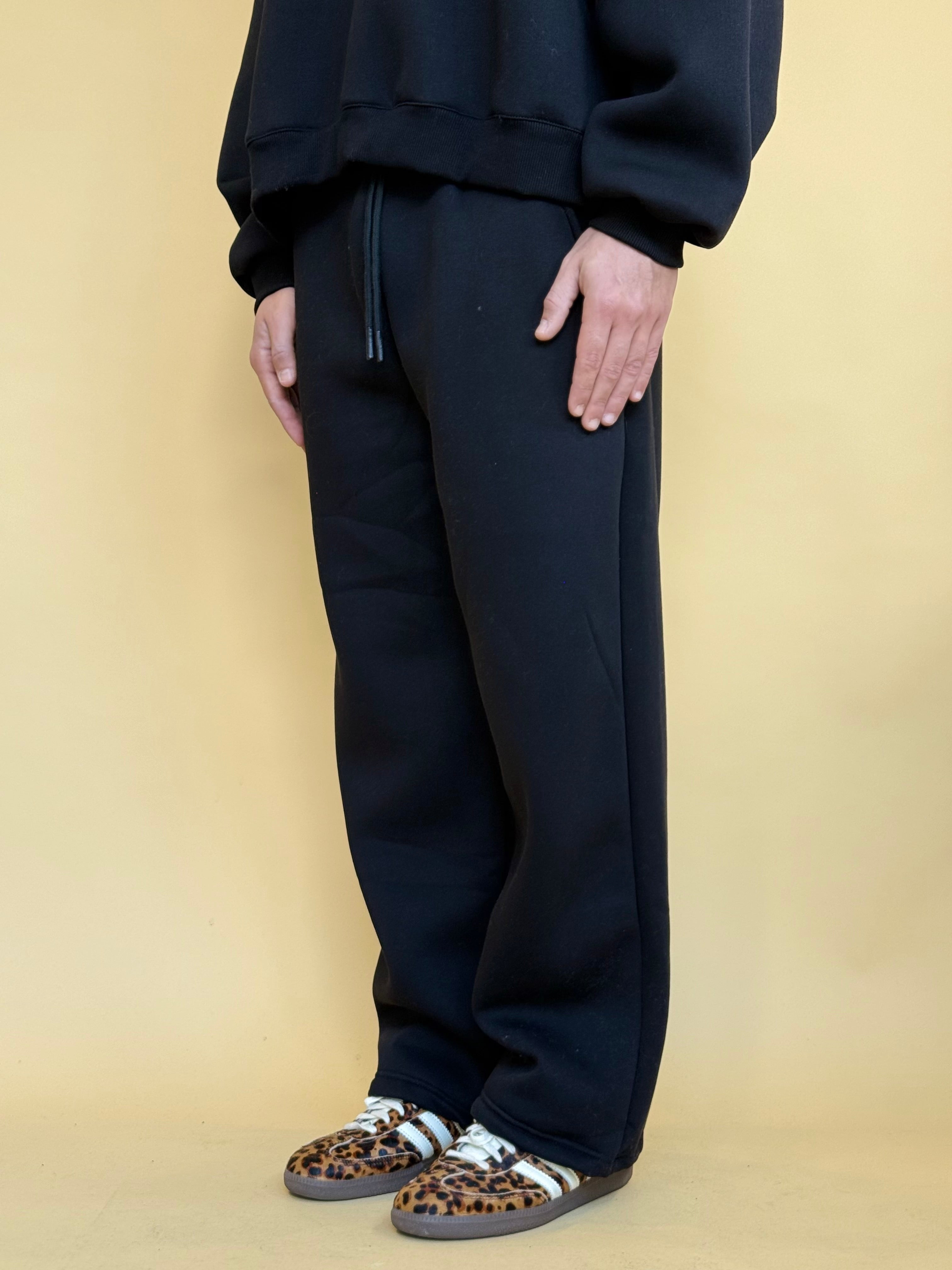 • Pantalone di felpa dalla vestibilità ampia al fondo con elastico in vita e laccetti. E' abbinato alle nostre 'CROP CREWNECK HOODIE'.